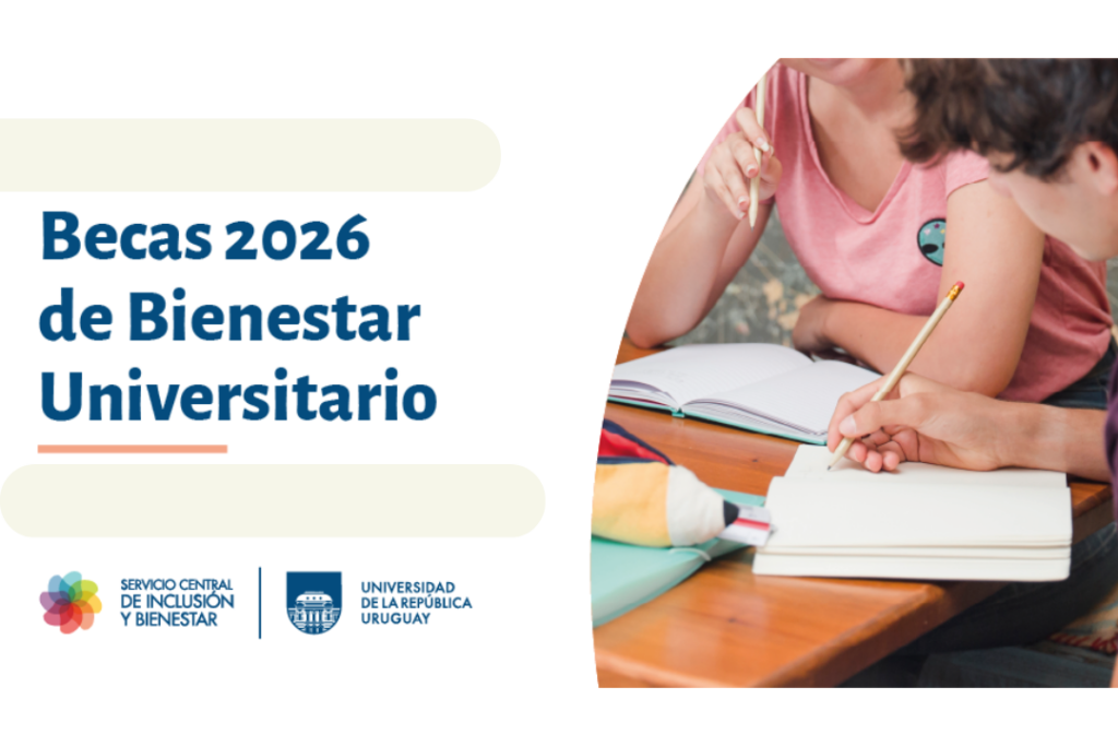 Abren las solicitudes de becas de Bienestar Universitario para estudiantes de la Udelar en 2026 El Programa de Becas de Bienestar Universitario de la Universidad de la República (Udelar) abrió su calendario de solicitudes para 2026. Estudiantes de todo el país pueden acceder a distintas formas de apoyo económico, alimentación, alojamiento, materiales de estudio y […]