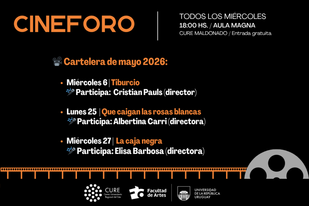 Cartelera de mayo del Cineforo: cine, diálogo y encuentro en la sede Maldonado del CURE El Cineforo del Centro Universitario Regional del Este (CURE), sede Maldonado, continúa consolidándose como un espacio abierto para disfrutar del cine y promover el intercambio colectivo en torno a sus múltiples dimensiones. Durante mayo de 2026, la propuesta reúne una […]