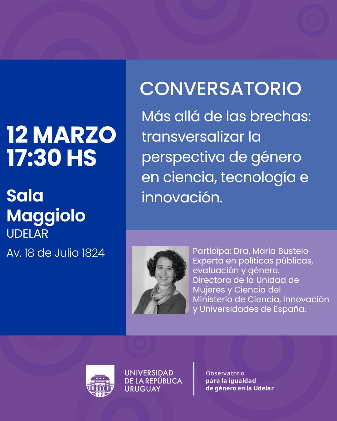 Dra. María Bustelo (España). Directora de la Unidad de Mujeres y Ciencia, Secretaría de Estado de Ciencia, Innovación y Universidades, Ministerio de Ciencia, Innovación y Universidades.