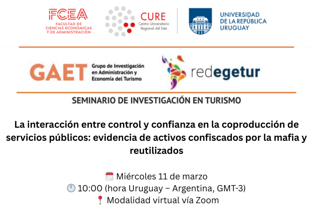 Seminario de Investigación en Turismo: “La interacción entre control y confianza en la coproducción de servicios públicos: evidencia de activos confiscados por la mafia y reutilizados”