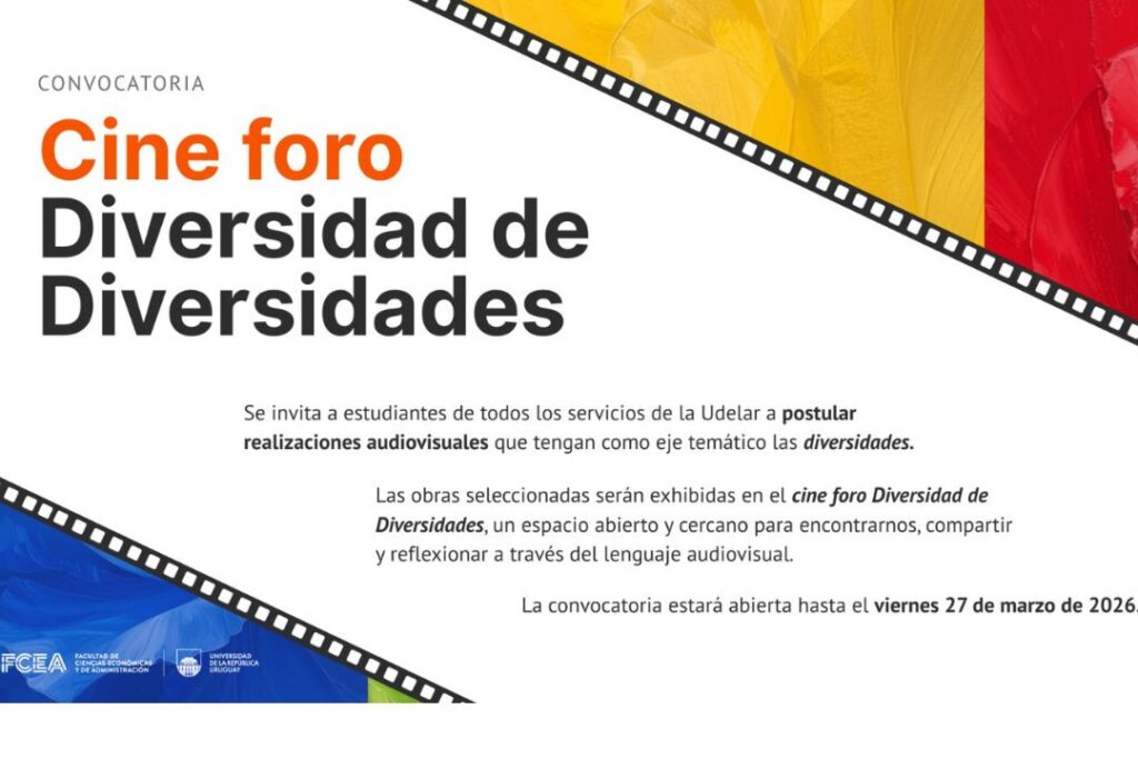 Cine foro Diversidad de Diversidades: convocatoria a estudiantes de la Udelar La Facultad de Ciencias Económicas y de Administración (FCEA) invita a participar del cine foro Diversidad de Diversidades, una instancia abierta dirigida a estudiantes de todos los servicios de la Universidad de la República (Udelar). Se invita a las y los estudiantes de la […]