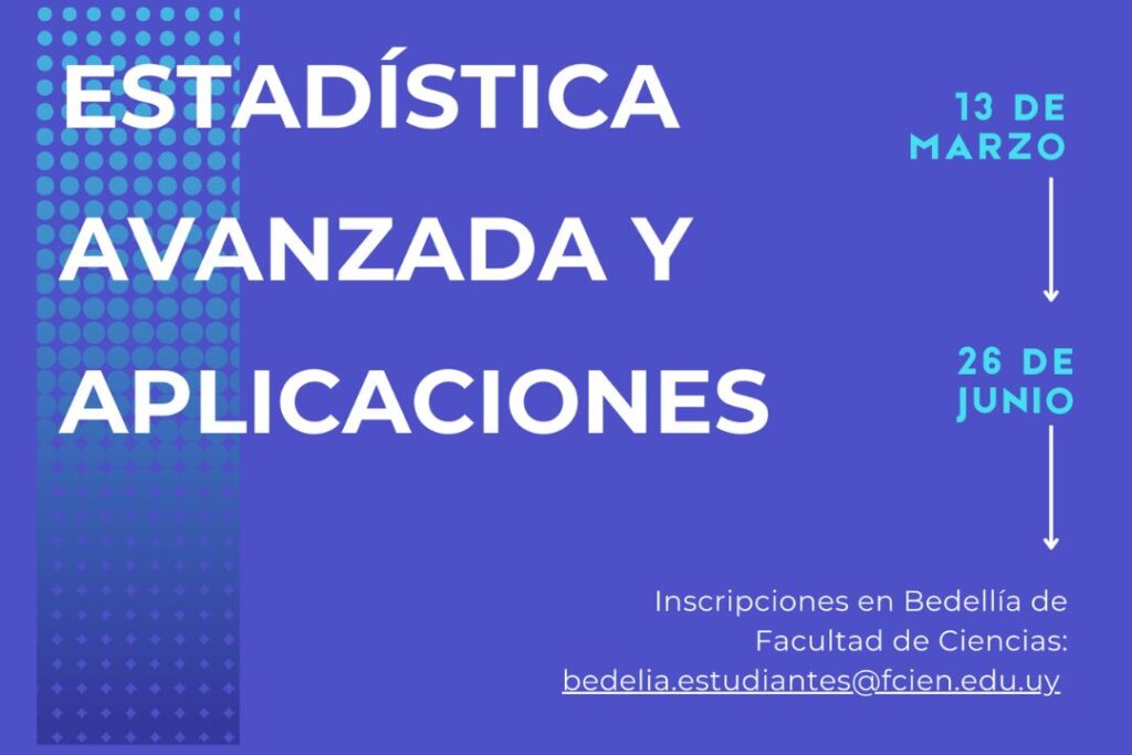 Curso de posgrado en Estadística Avanzada y Aplicaciones Están abiertas las inscripciones al curso de posgrado “Estadística Avanzada y Aplicaciones”, del Departamento de Modelización Estadística de Datos e Inteligencia Artificial (MEDIA), que se dictará durante el primer semestre en el Centro Universitario Regional del Este (CURE), sede de Rocha. El curso de Estadística Avanzada y […]